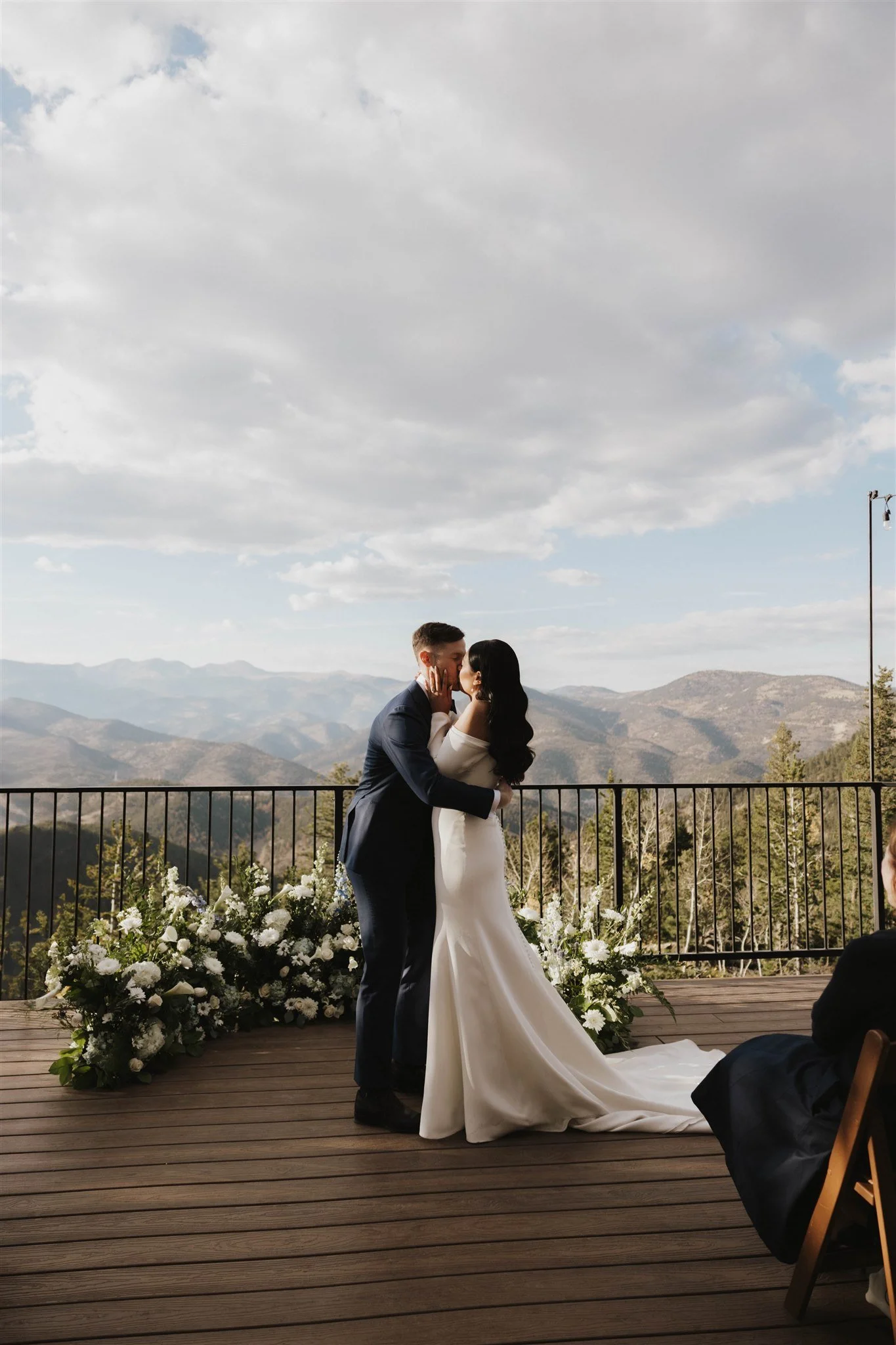 The weather couldn’t have been more perfect for an October wedding in Colorado. Their ceremony took place outdoors on the deck, offering stunning views of the surrounding trees and mountains. The colorful fall foliage created a picture-perfect backdrop as they said their “I do’s.”